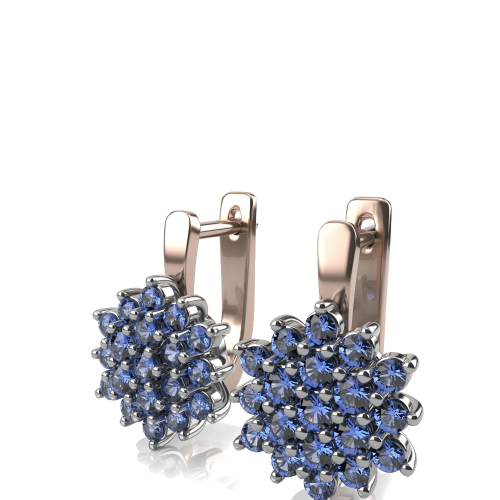 Роскошные серьги из красного и белого золота 585 пробы с драгоценными камнями, натуральными сапфирами