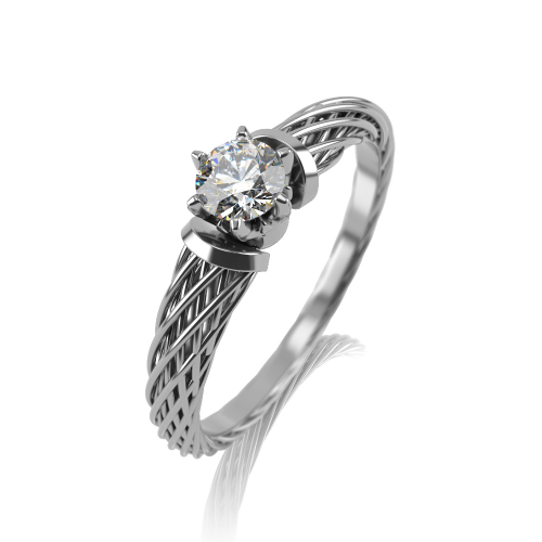 Стильное кольцо из белого золота 585 пробы с бриллиантом и уникальной рельефной обработкой поверхности