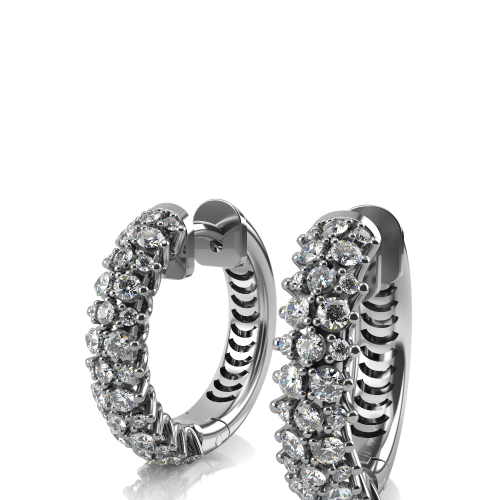 Стильные серьги-кольца, выполнены из белого золота 585 пробы, украшены россыпью роскошных сияющих бриллиантов. Закрепка камней в белом золоте придает им объем и подчеркивает природную красоту и игру света. Смотрится очень эффектно и современно.