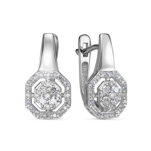 Роскошные серьги, выполнены из белого золота 585 пробы, украшены великолепной россыпью сияющих бриллиантов.