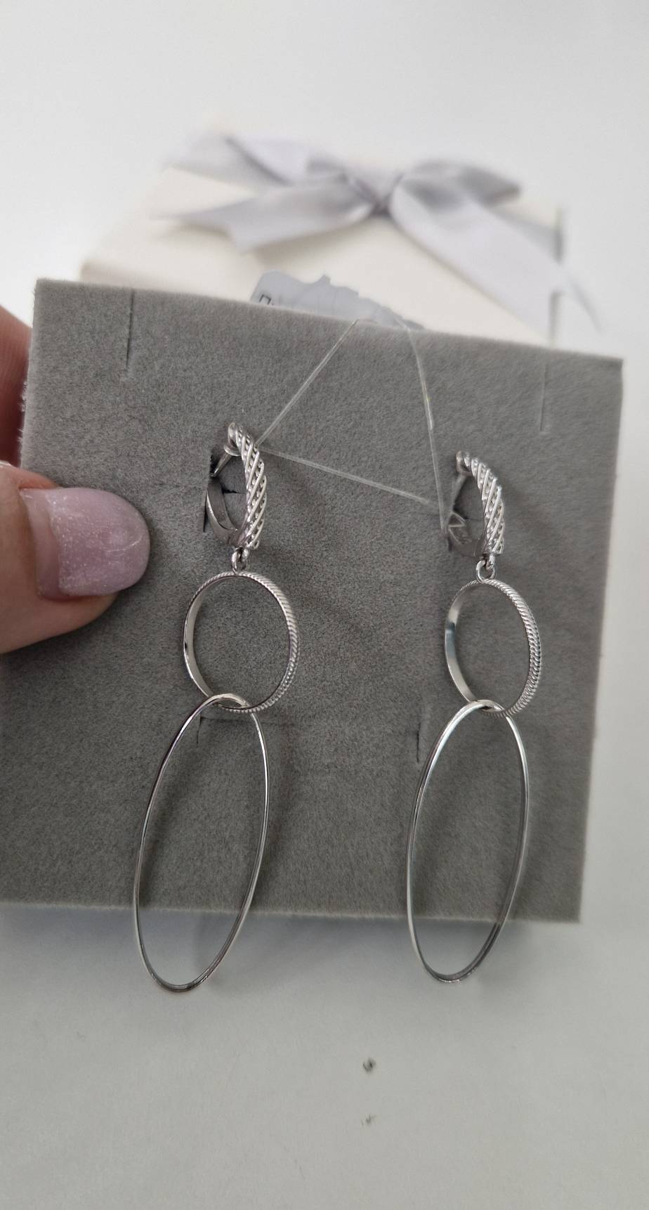 Роскошные длинные серьги выполнены из белого золота 585 пробы