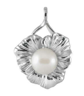 Нежная подвеска, в виде цветка, украшенного жемчужиной, выполнена из серебра 925 пробы