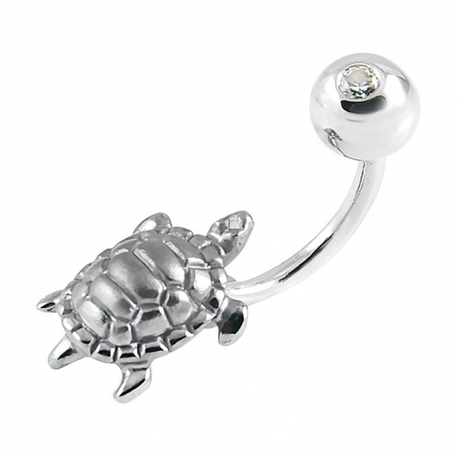 Пирсинг в виде черепашки выполнен из родированного серебра 925 пробы, украшен сверкающим фианитом