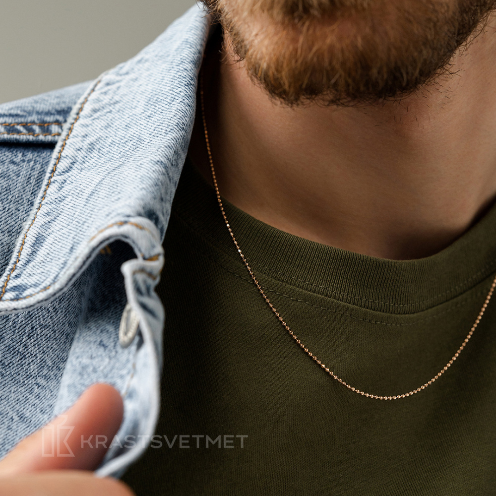Цепь из тёплого красного золота 585 пробы с жемчужным плетением «Шарики» и выразительной отделкой алмазной гранью