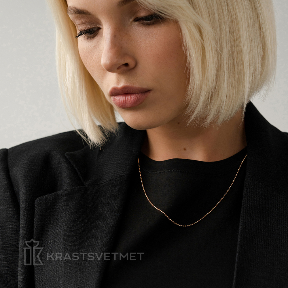 Цепь из тёплого красного золота 585 пробы с жемчужным плетением «Шарики» и выразительной отделкой алмазной гранью