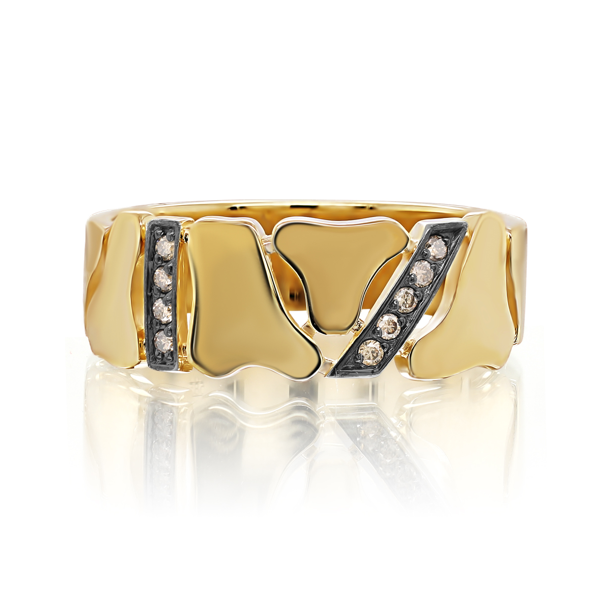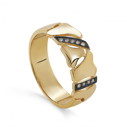 Стильное кольцо с бриллиантами коньячного оттенка выполнено из жёлтого золота 585 пробы