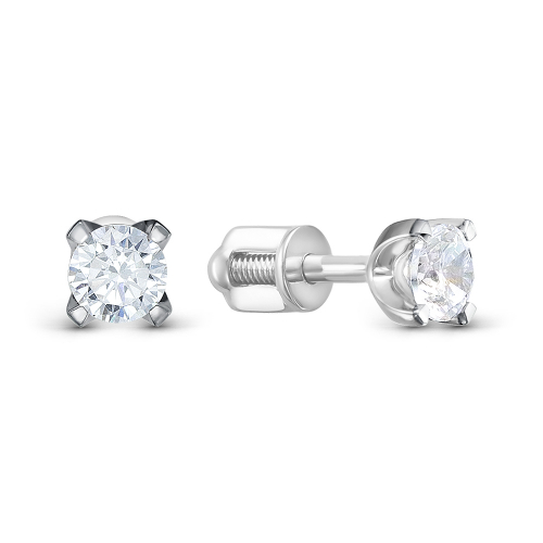 Cерьги-пусеты с роскошными бриллиантами полной огранки в 57 граней, выполнены из белого золота 585 пробы