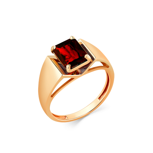 Элегантное кольцо с натуральным гранатом выполнено из красного золота 585 пробы