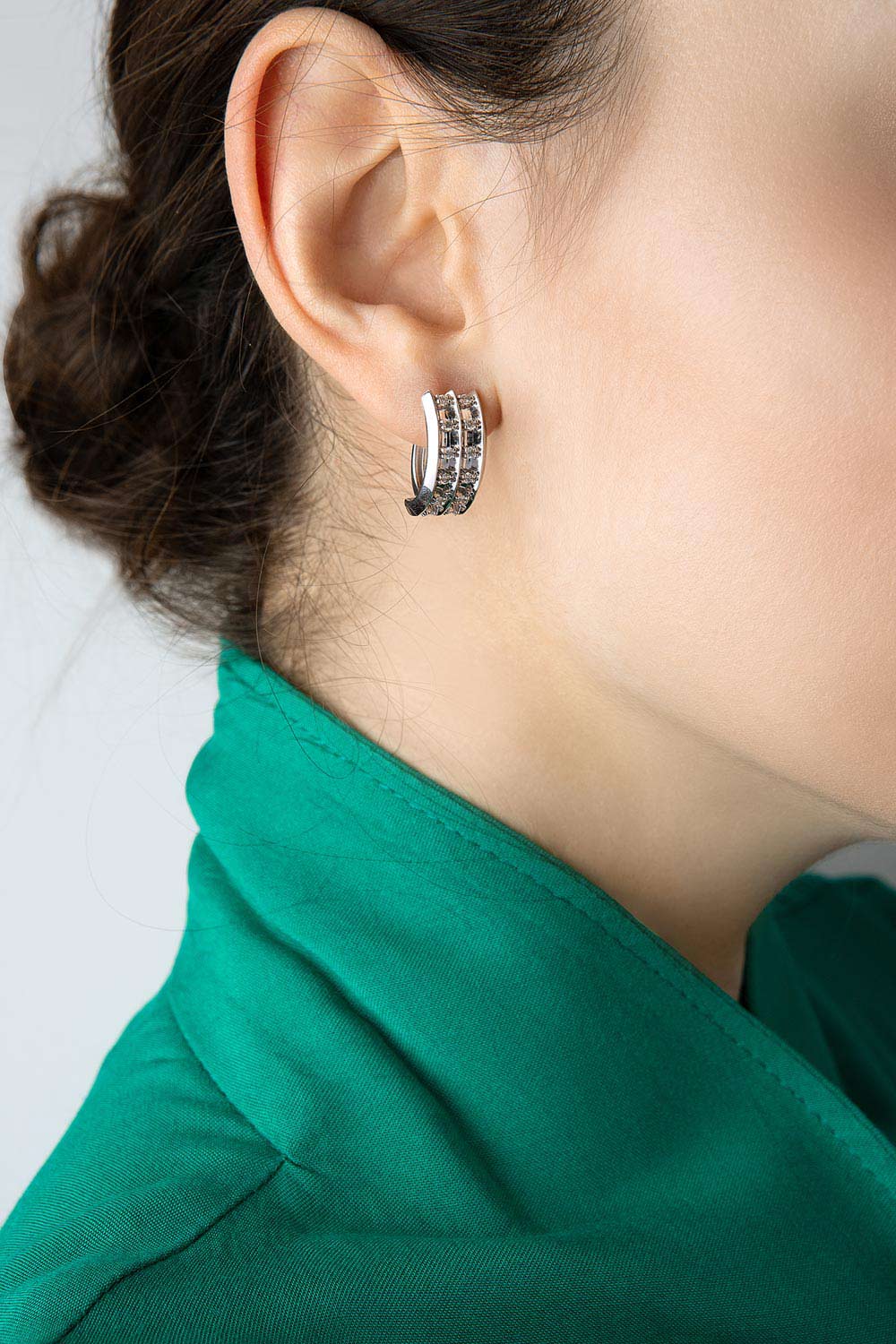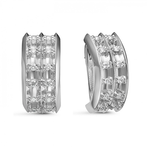Стильные объёмные серьги, украшенные россыпью сверкающих бриллиантов, выполнены из белого золота 585 пробы. Белое золото визуально увеличивает объём бриллиантов и подчеркивает их блеск и природную красоту. Тип замка - английский, самый надежный и удобный.