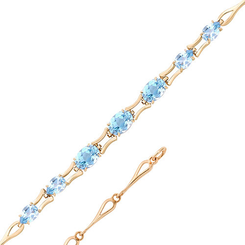 Элегантный цепочный женский браслет из красного золота 585 пробы с фантазийной формой звеньев и сверкающими голубыми топазами — это украшение, сочетающее в себе роскошь и оригинальность