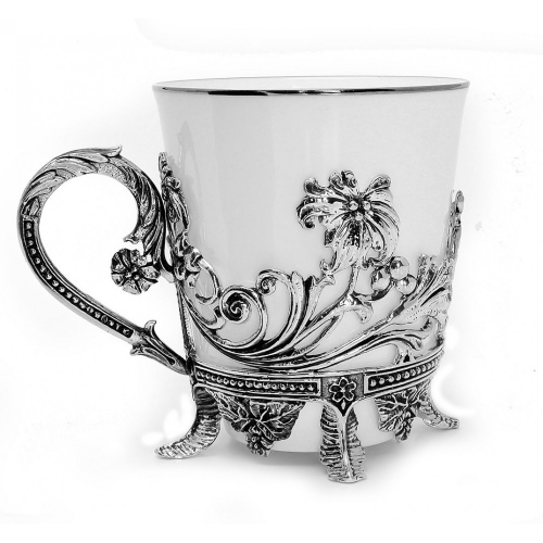 Чашка чайная "Цветочная" выполнена из серебра 925 пробы