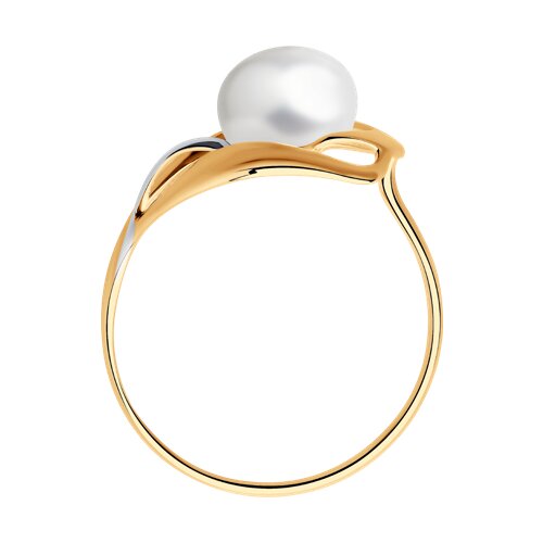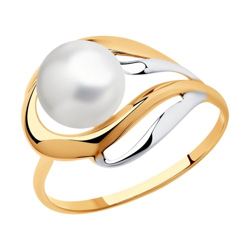 Объёмное кольцо с жемчугом выполнено с сочетанием красного и белого золота 585 пробы