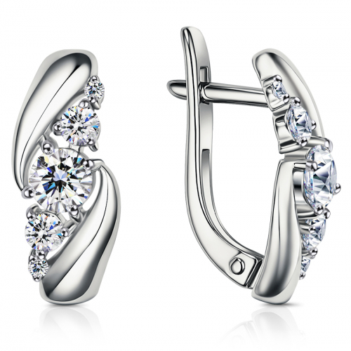 Нежные серьги украшены дорожкой сверкающих фианитов, выполнены из серебра 925 пробы