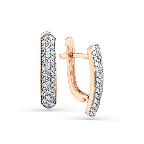 Элегантные серьги, украшенные дорожками сверкающих бриллиантов, выполнены с сочетанием красного и белого золота 585 пробы