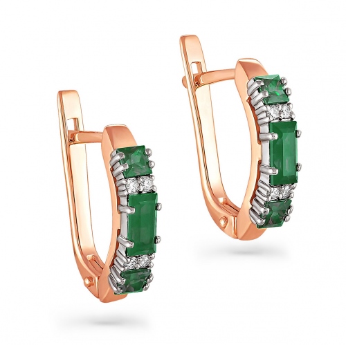 Роскошные элегантные серьги, выполнены в сочетании красного и белого золота 585 пробы, украшены натуральными изумрудами в инкрустации сияющих бриллиантов