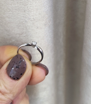 Сейчас перешла на белый металл. Решила себя порадовать. Выбор остановила на этом утонченном кольце. Смотрится очень элегантно, ничего лишнего. И цена очень хорошая.