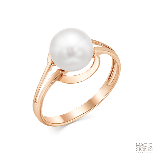 Нежное ажурное кольцо, выполнено из красного золота 585 пробы, украшено великолепной жемчужиной
