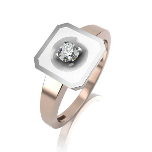 Роскошное кольцо, выполненное в красном золоте 585 пробы с крупным центральным бриллиантом и белой керамикой