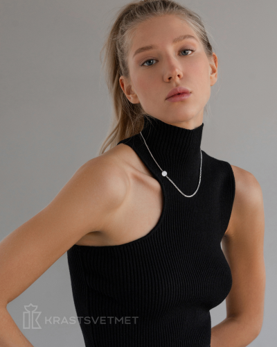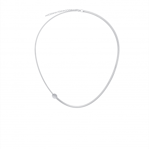 Стильное колье состоящее из двух гурмет разного диаметра (d 0,9 мм и 0,5мм) с акцентом в виде круглого диска (d9мм) выполнено из серебра 925 пробы