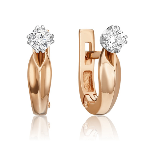Серьги классического дизайна с бриллиантами, выполнены из красного золота 585 пробы
