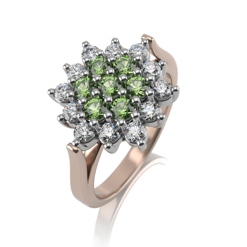 Роскошное кольцо из красного и белого золота 585 пробы с драгоценными камнями, натуральными изумрудами и бриллиантами