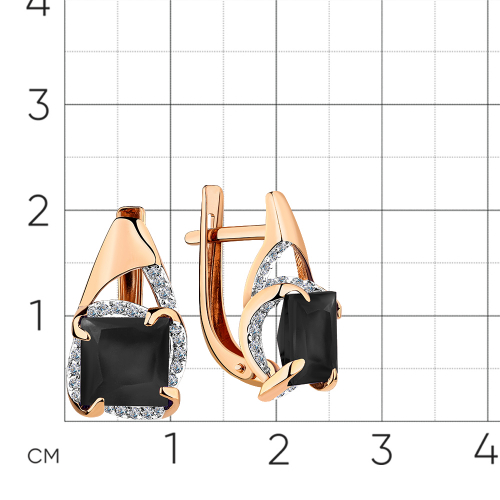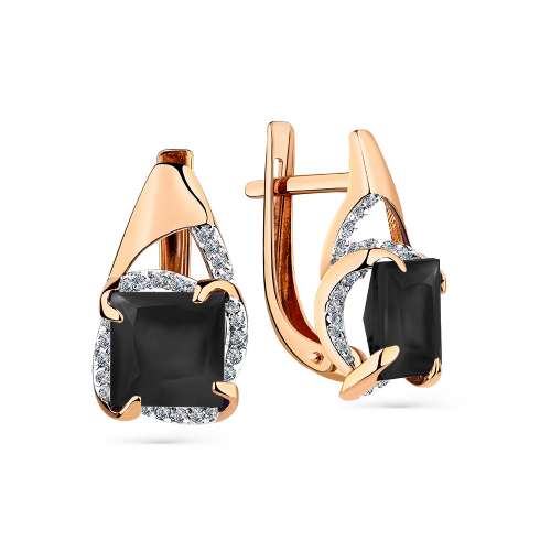 Серьги украшены контрастным сочетанием чёрного агата и сверкающих фианитов, выполнены из красного и белого золота 585 пробы