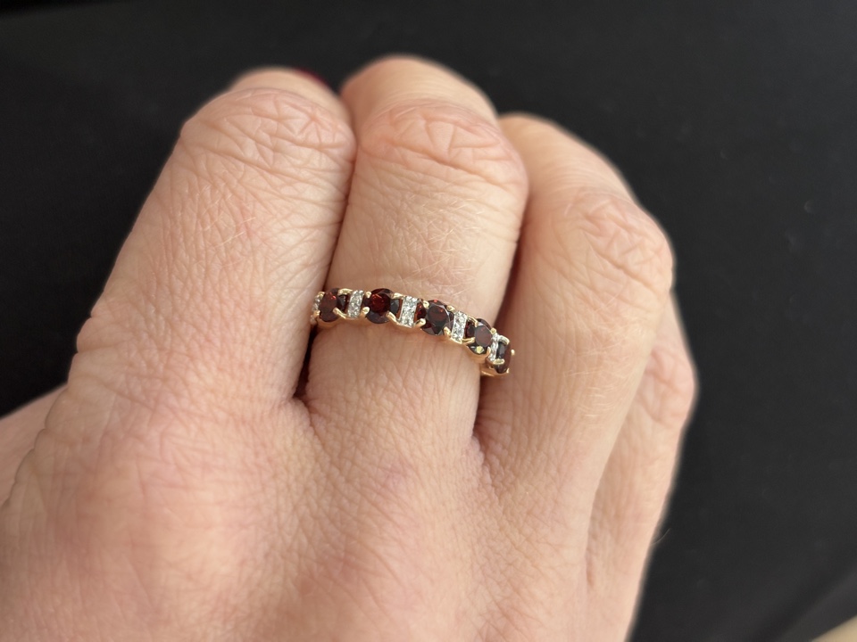 Кольцо очаровательное: ненавязчивое, но при этом эффектное. Гранат и фианиты отлично сочетаются.