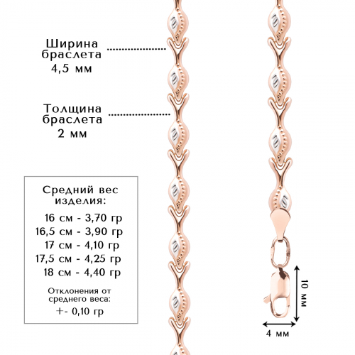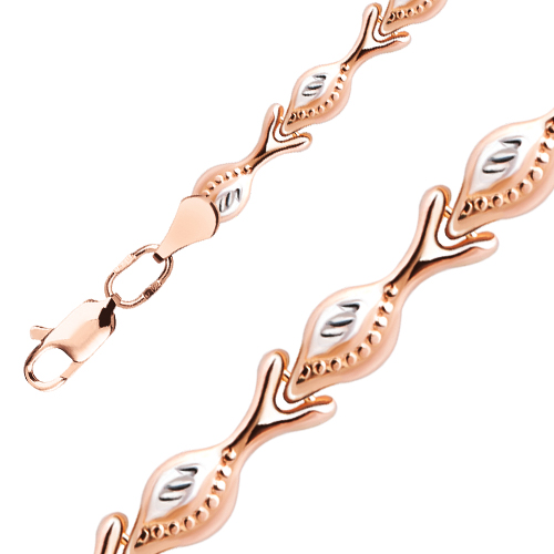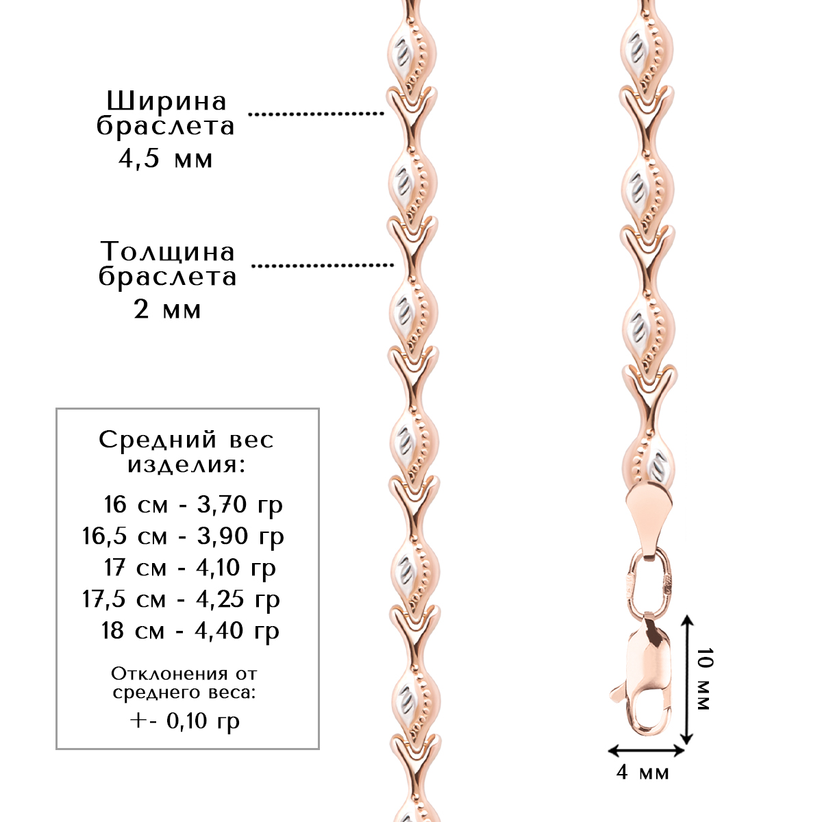 Женский ролексный браслет с геометрическим мотивом, выполненный из комбинации красного и белого золота 585 пробы с изысканной обработкой «алмазная грань»