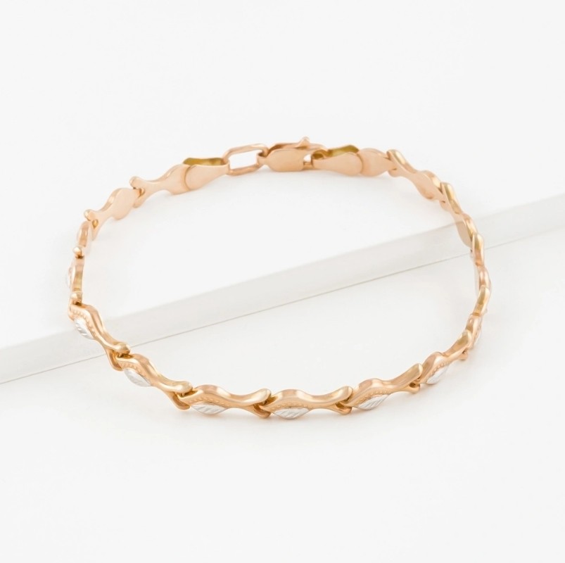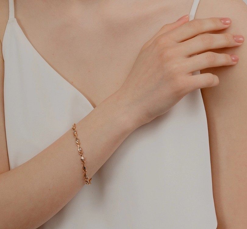 Золотой браслет очень красивый, очень нежный. По качеству все отлично, замок работает, каждое звено в порядке, проба у замка стоит, ее хорошо видно. Браслет на руке переливается, как с камнями, очень красивый, купила маме в подарок, довольна.