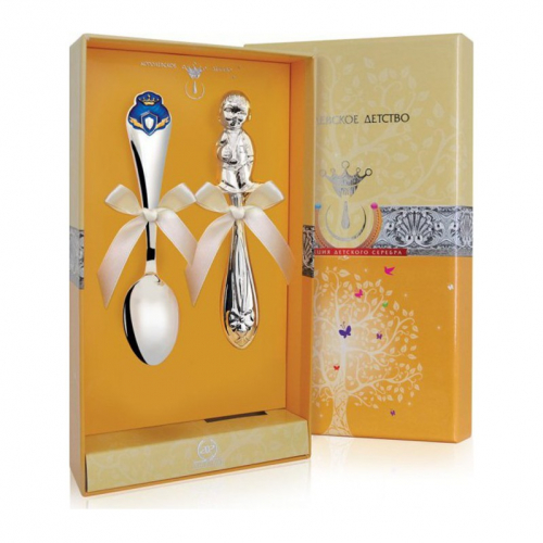 Фирменный подарочный футляр Аргента для детского набора из двух столовых серебрянных проборов