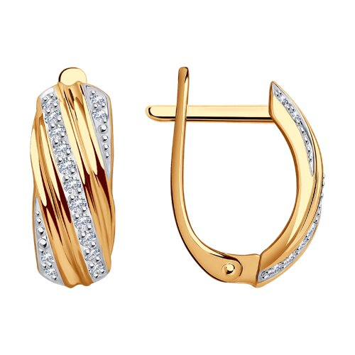 Элегантные серьги выполнены с сочетанием красного и белого золота 585 пробы