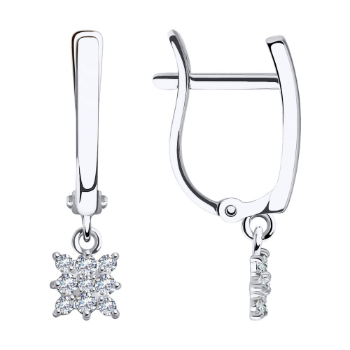 Нежные удлиненные серьги выполнены в белом золоте 585 пробы, украшенные сияющими фианитами