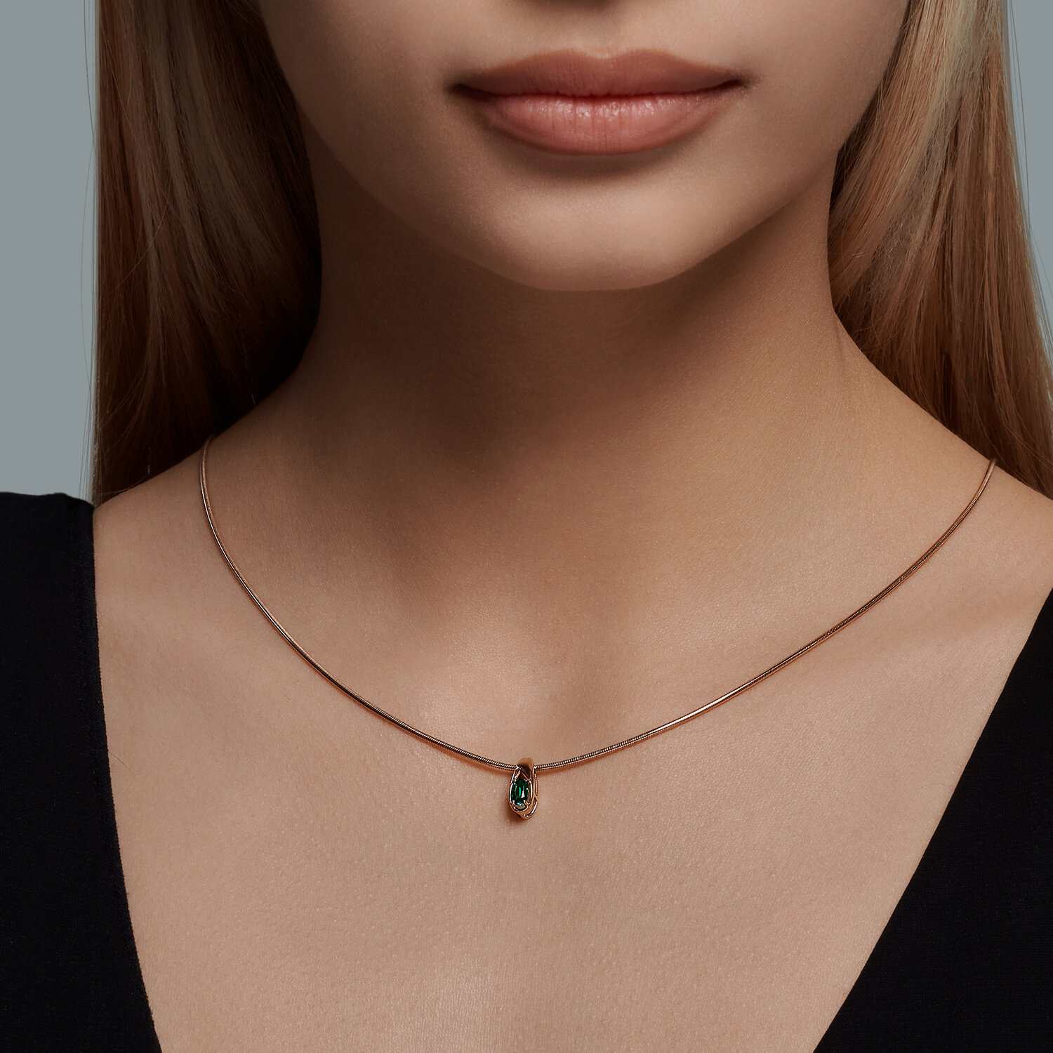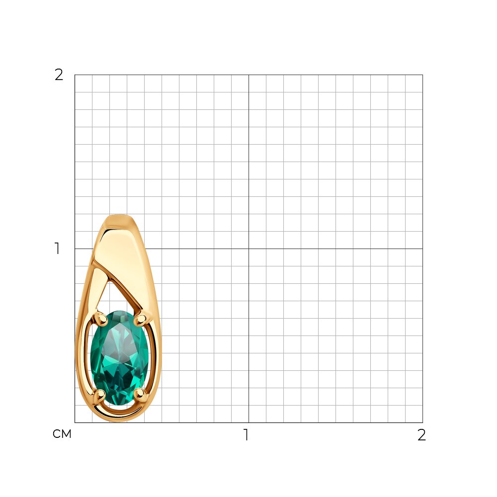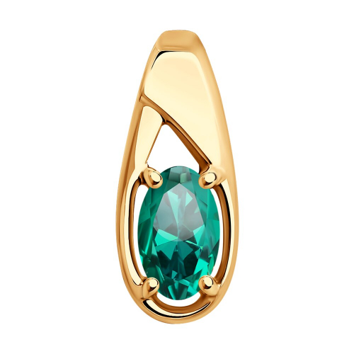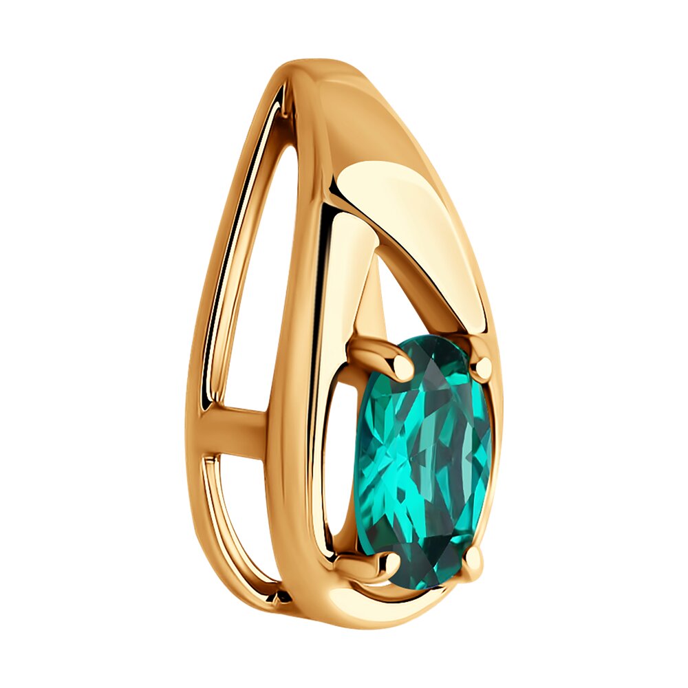 Лаконичная подвеска - бегунок с зеленым гидротермальным изумрудом выполнена из красного золота 585 пробы в стиле минимализм
