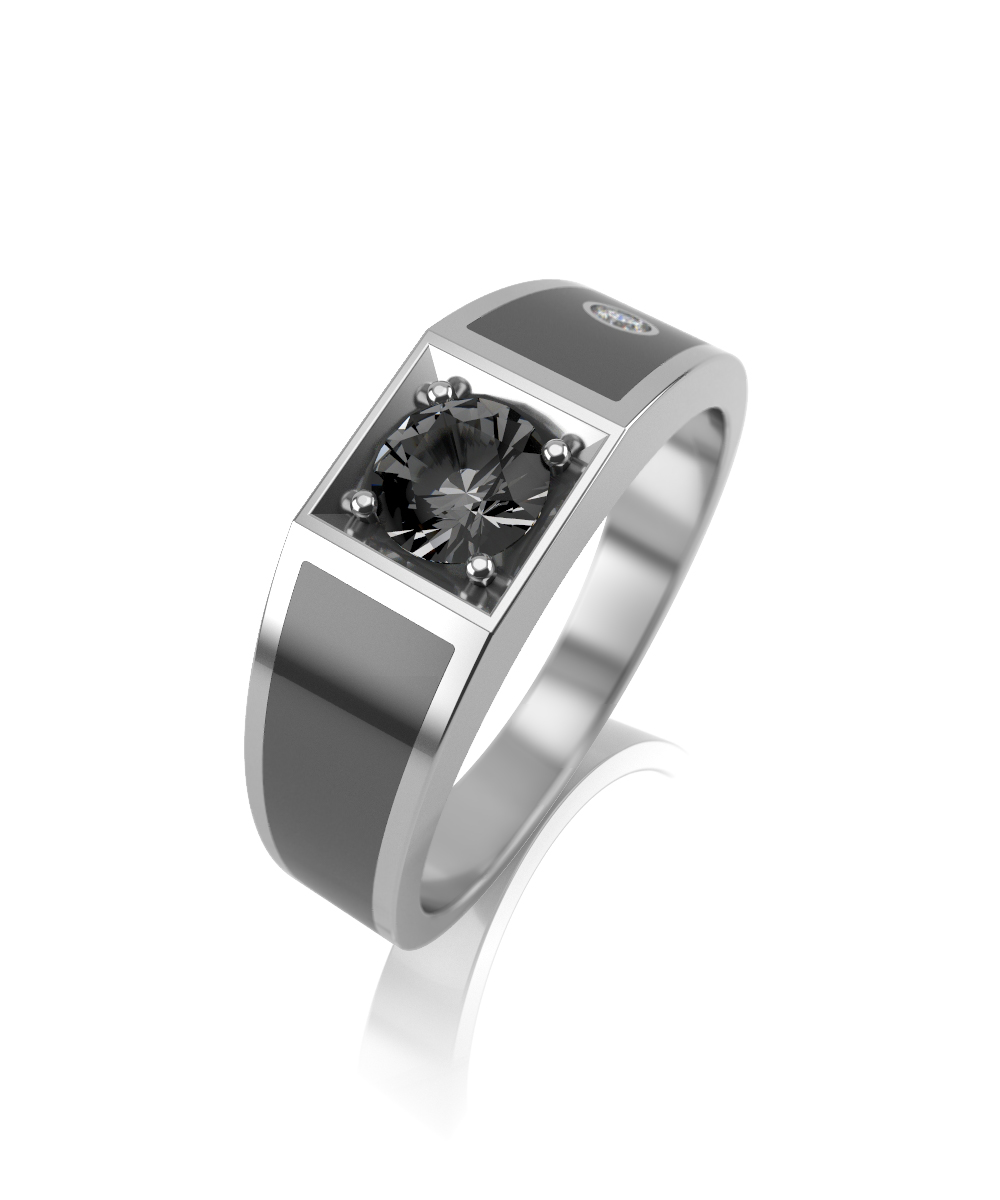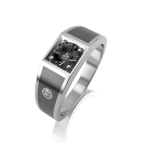Стильное кольцо-печатка, выполненное из серебра 925 пробы в сочетании с черной керамикой и украшенное фианитами.