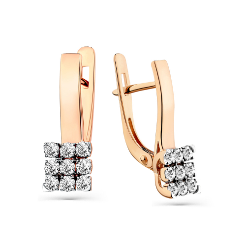 Роскошные серьги с сверкающими бриллиантами выполнены с сочетанием красного и белого золота 585 пробы
