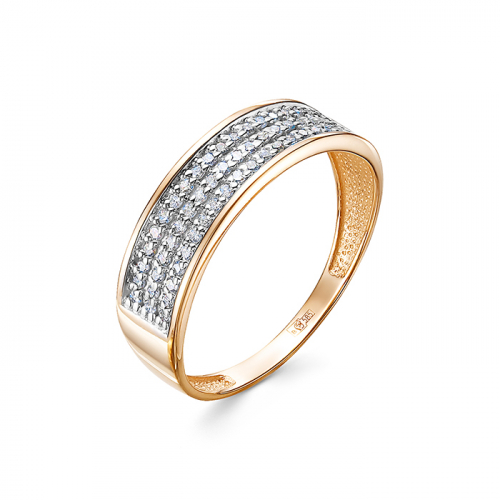 Роскошное кольцо, выполнено в сочетании красного и белого золота 585 пробы, украшено россыпными дорожками искрящихся бриллиантов
