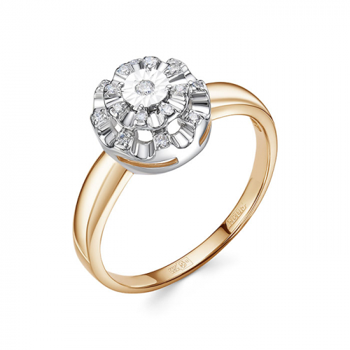 Роскошное кольцо с сверкающими бриллиантами в объёмной фантазийной закрепке, выполнено с сочетанием красного и белого золота 585 пробы. Полная огранка бриллианта, круглая 57 граней, является традиционной русской огранкой, при которой наилучшим образом передается игра и блеск бриллианта. Изделие представлено брендом "Империал". К украшению прилагается сертификат от производителя о подлинности драгоценных камней. Средняя характеристика камней на артикул: 1 Бр Кр-57 (60-40) 3/6А 0,022Ct ,16 Бр Кр-57 (400-200) 3/6А 0,080Ct. К украшению прилагается сертификат от производителя о подлинности драгоценных камней.