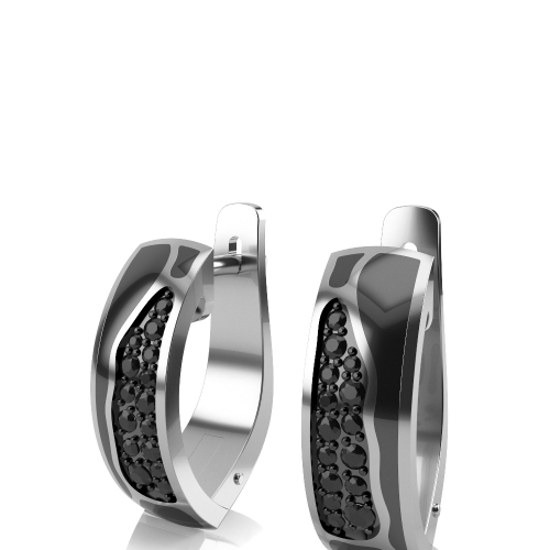 Стильные серьги из серебра 925 пробы. Изделие выполнено в сочетании с черной керамикой и украшено россыпью черных фианитов.
