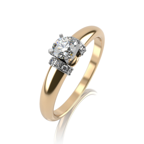 Стильное помолвочное кольцо, выполненное в сочетании белого и желтого золота 585 пробы и украшенное бриллиантами. Сочетание гладкой зеркальной поверхности кольца с яркими бриллиантами смотрится очень эффектно. Изделие представлено брендом GRAF КОЛЬЦОВ. Средняя характеристика вставок на артикул: 1 Бр Кр57 0,16 3/5 А; 10 Бр Кр57 0,040 3/5 А.