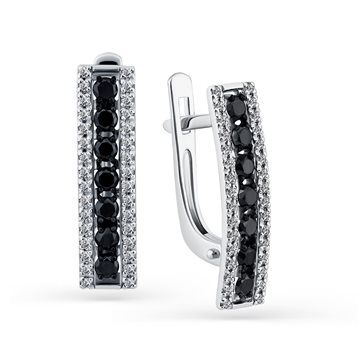 Роскошные серьги выполнены из белого золота 585 пробы, украшены великолепными чёрными и бесцветными сияющими бриллиантами. Блеск благородного металла в сочетании с бриллиантами, привлекают внимание с первого вгляда. Огранка камней максимально раскрывает их красоту, а оправа позволяет лучам света играть на их поверхности, делая их ещё более искристыми. Дизайн украшения универсально подходит к какому угодно образу и способен изящно завершить любой наряд. Изделие представлено брендом MASTER BRILLIANT. Средняя характеристика камней на артикул: 14 Бр черный Круг 0,574; 64 Бр Круг 0,256.
