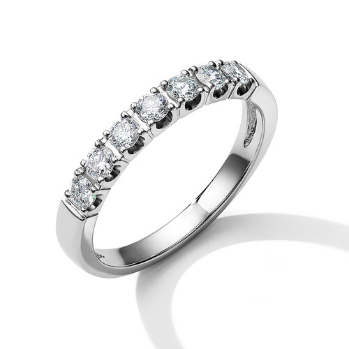 Роскошное кольцо выполнено из белого золота 585 пробы, украшено великолепными сияющими бриллиантами. Блеск благородного металла в сочетании с сияющими бриллиантами, привлекают внимание с первого вгляда. Огранка камней максимально раскрывает их красоту, а оправа позволяет лучам света играть на их поверхности, делая их ещё более искристыми. Истинных ценителей красивых и оригинальных ювелирных изделий непременно заинтересует такое кольцо. Изделие представлено брендом БЕЛЫЙ БРИЛЛИАНТ. Средняя характеристика камней на артикул: 7 Бр (N) Кр-57 0,3500 3/5А.