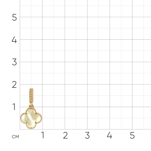 Оказывается очень сложно найти что то интересное в желтом золоте. Когда увидела подвеску в виде клевера, даже думать не стала, сразу взяла. Смотрится классно, перламутор красиво отливает в разные оттенки, но на фото этого не видно.