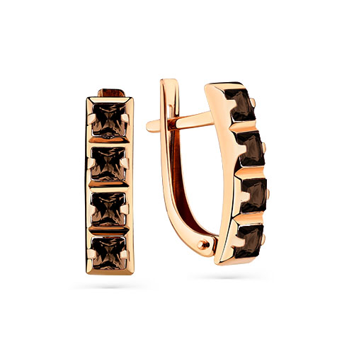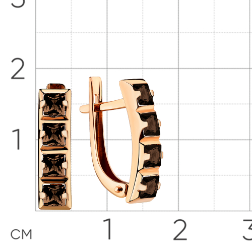 Элегантные серьги, украшенные дорожкой дымчато-коричневых раух-топазов, выполнены из красного золота 585 пробы
