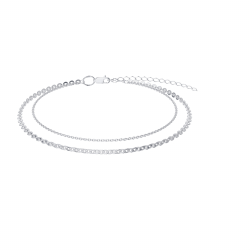 Стильный многослойный браслет, состоящий из двух якорных цепей с алмазной гранью, выполнен из родированного серебра 925 пробы