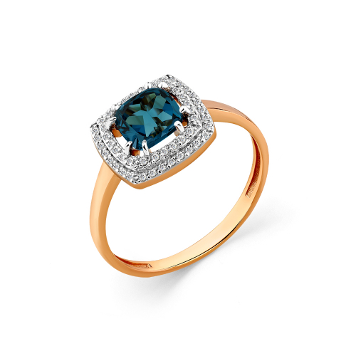 Стильное кольцо, выполнено из красного золота 585 пробы, украшено камнем лондон -топаз и белыми фианитами