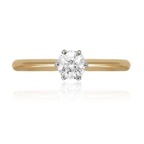 Помолвочное кольцо с роскошным сияющим бриллиантом, выполнено с сочетанием красного и белого золота 585 пробы