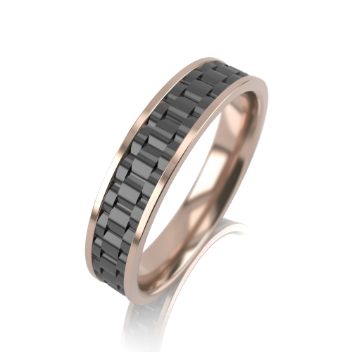 Стильное парное обручальное кольцо из красного золота с черной керамикой в виде шайбы