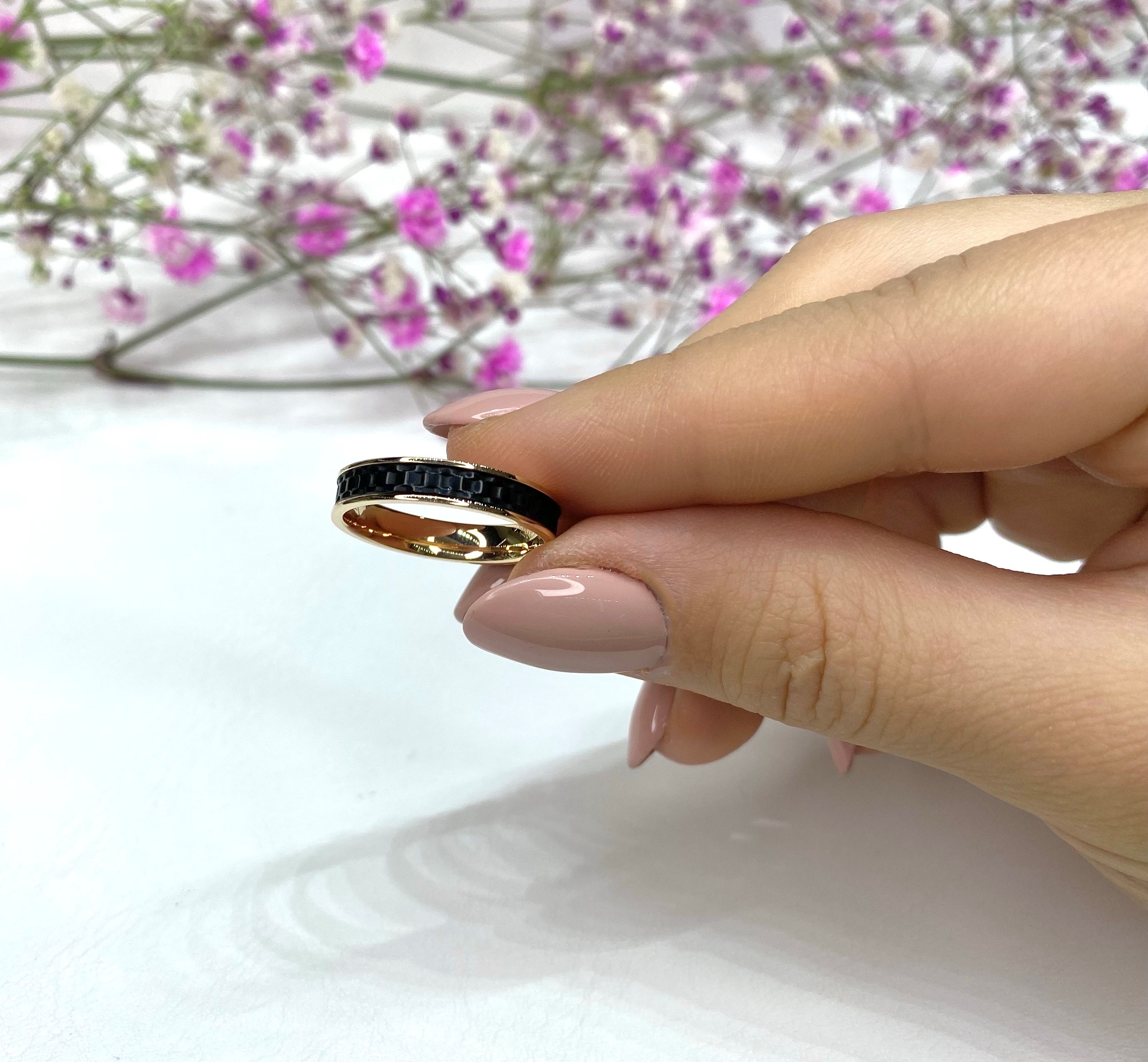 Купили себе с мужем интересные обручальные кольца с керамикой, обычные уже были у нас. Модель идет с комфортной посадкой, уютно сидит на пальце. Кольца необлегченные. Все обращают на них внимание!