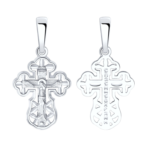 Ажурная подвеска в виде нательного креста выполнена из белого золота 585 пробы