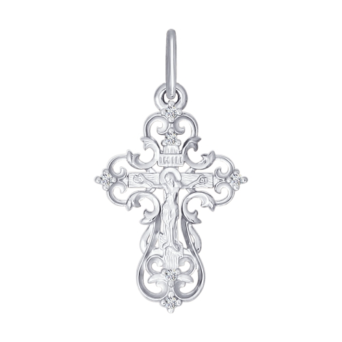 Православный крест выполнен из белого золота 585 пробы, в нем исполнены все каноны Православной Церкви, на внешней стороне креста распятие, красивый ажурный крест